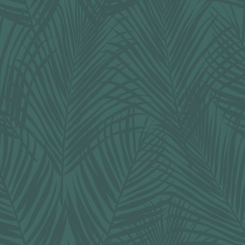 Smaragdgrüne Vliestapete, metallische Palmenblätter.
