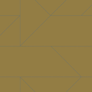 Ockerfarbene Vliestapete, metallische Linien bilden geometrische Muster.