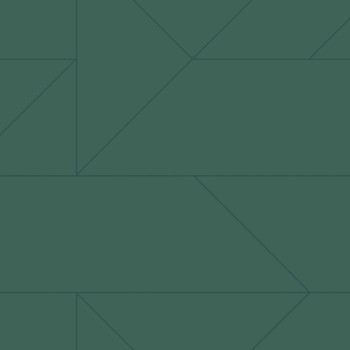 Smaragdgrüne Vliestapete, metallische Linien bilden geometrische Muster.