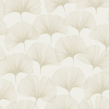 Cremefarbene Vliestapete, metallische Ginkgoblätter.