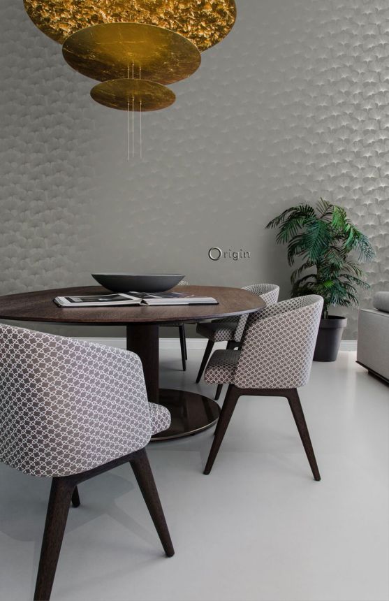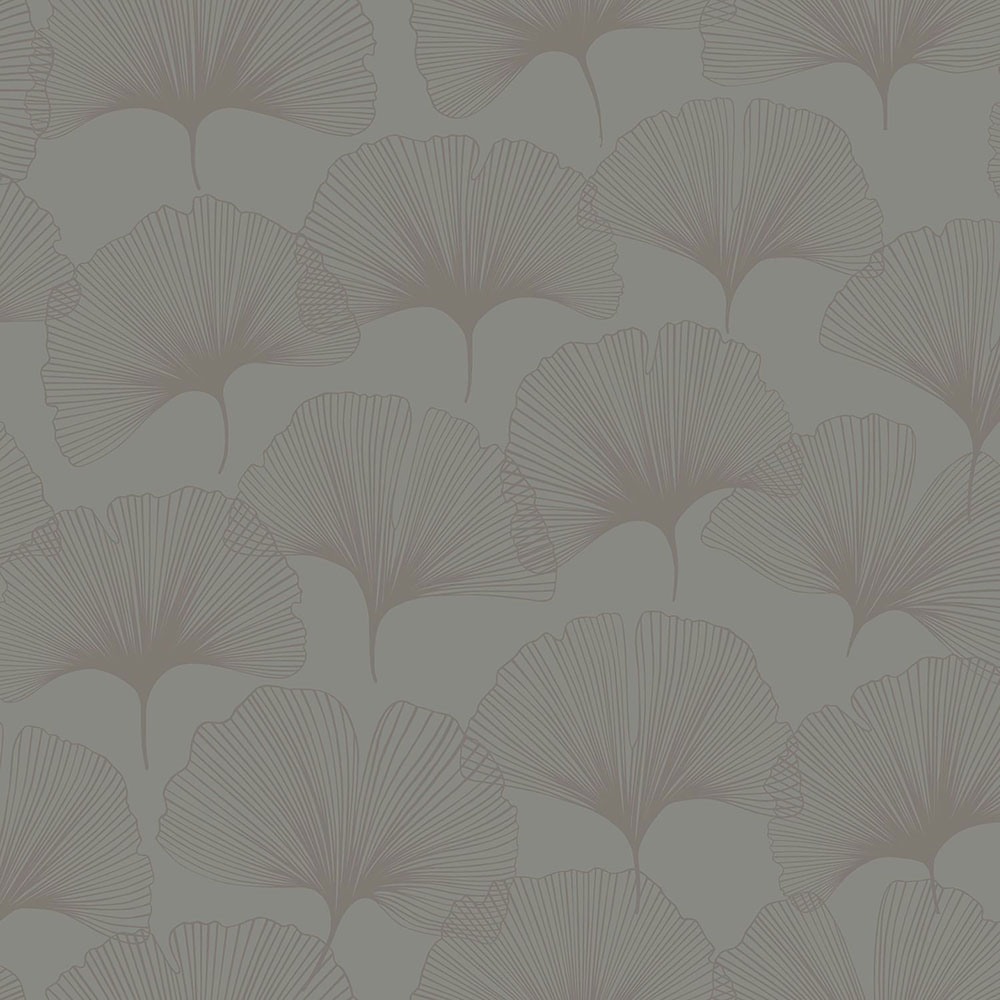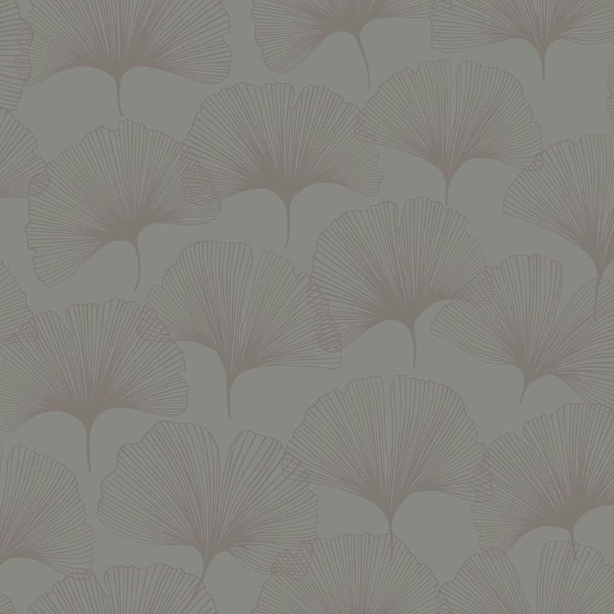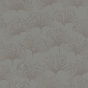 Graue Tapete, braune metallische Ginkgoblätter 347731, City Chic, Origin