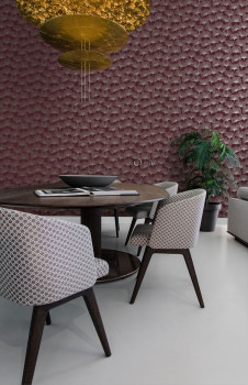 Weinrote Tapete, silberne Ginkgoblätter 347732, City Chic, Origin