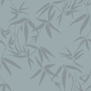 Graugrüne Vliestapete, metallische Bambusblätter.