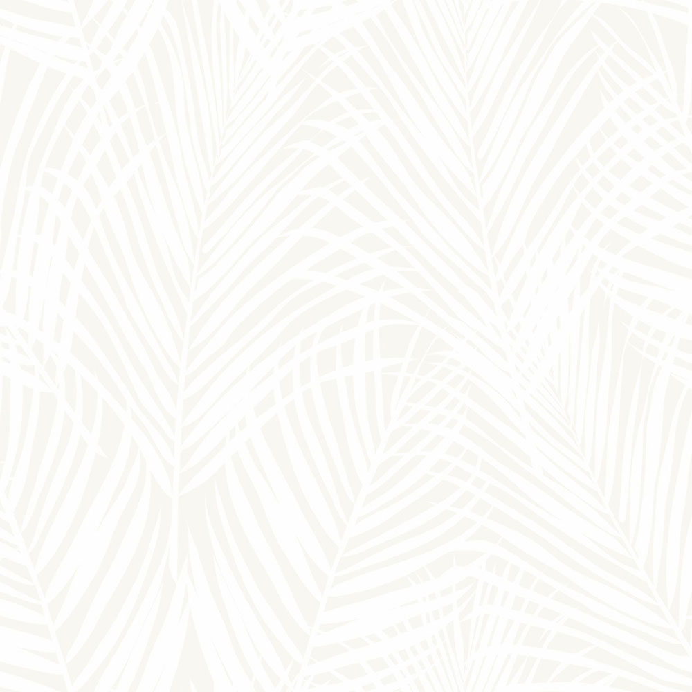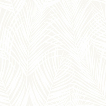 Metallic-Creme Vliestapete, mattweiße Palmenblätter.