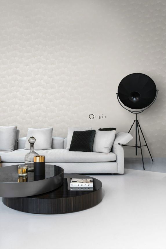 Tapete in Metallic-Goldbeige, matte Umrisse von Ginkgo-Blättern 347749, City Chic, Origin