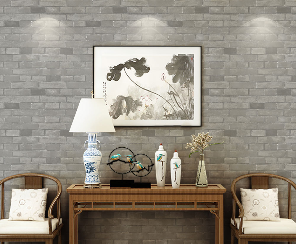 Abwaschbare Vinyltapete Dekor Grau Ziegel, Ziegelwand.