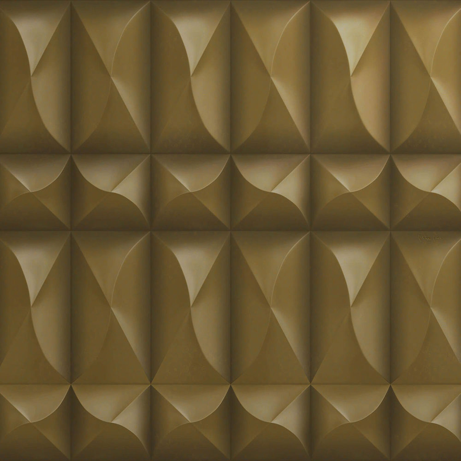 Luxuriöse Fototapete mit einem braunen geometrischen Muster auf einem strukturierten Textilhintergrund.