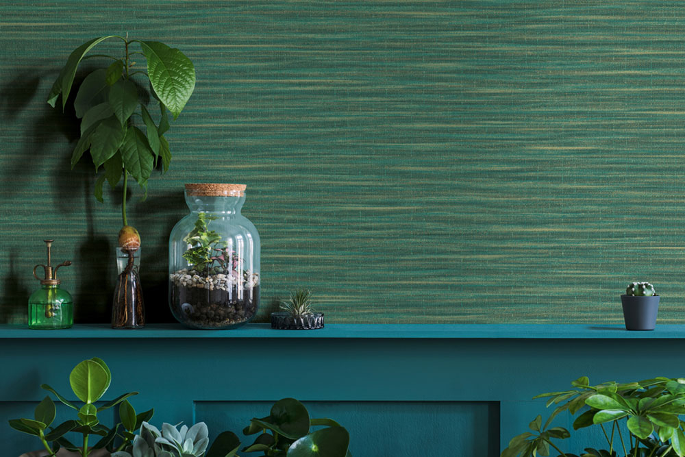 Luxustapete grün-gold, gewebtes Raffia-Muster 33317, Botanica, Marburg