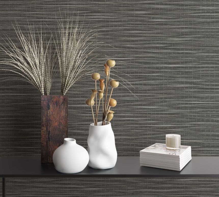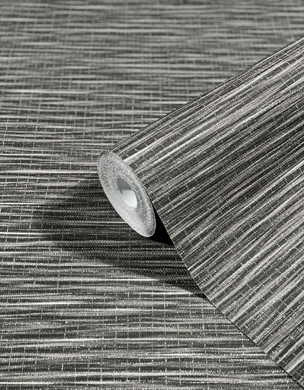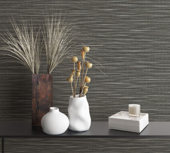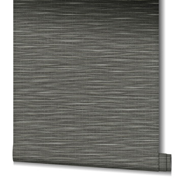 Grau-schwarze Luxustapete, gewebtes Raffia-Muster 33320, Botanica, Marburg