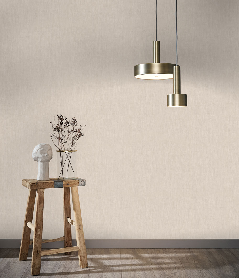 Luxuriöse beige Vliestapete mit Vinyloberfläche - Stoffstruktur.