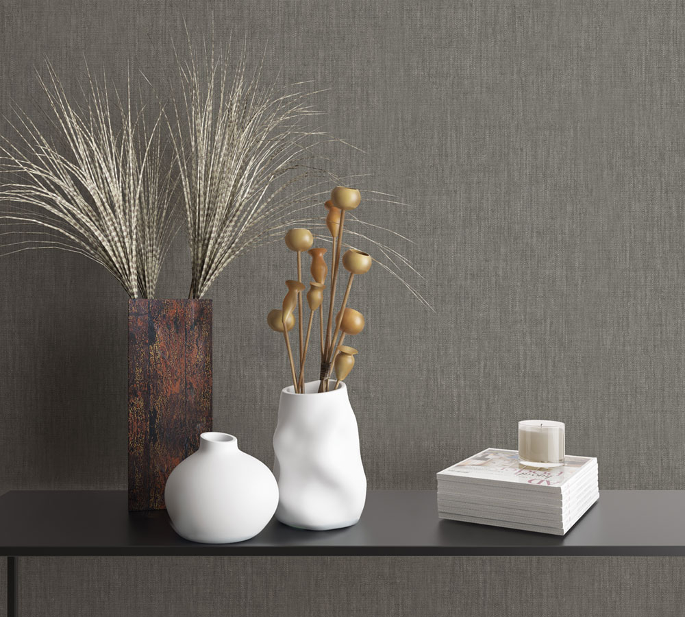 Grau-braune einfarbige Luxustapete, Stoffimitation 33330, Botanica, Marburg