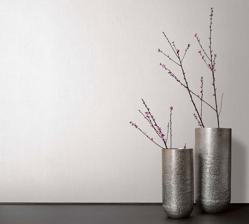 Luxuriöse weiße Vliestapete mit Vinyloberfläche - Stoffstruktur.