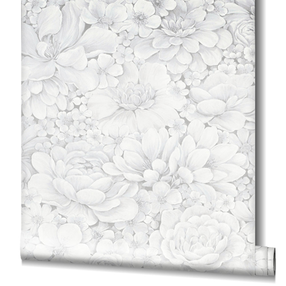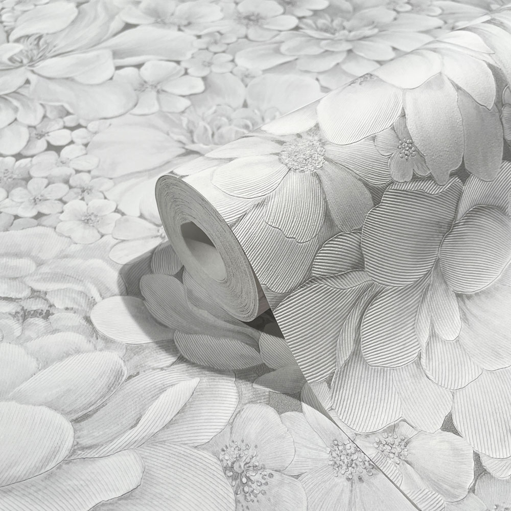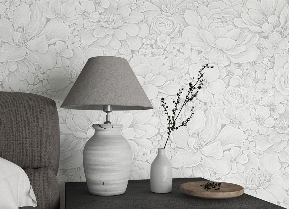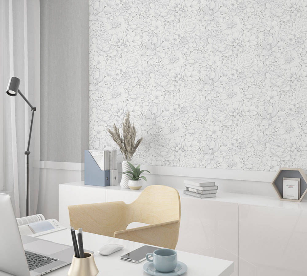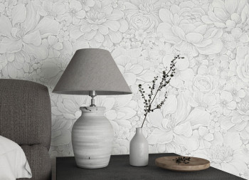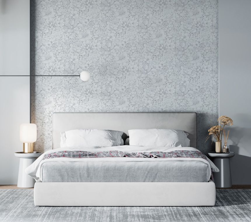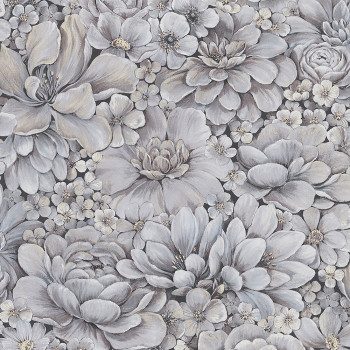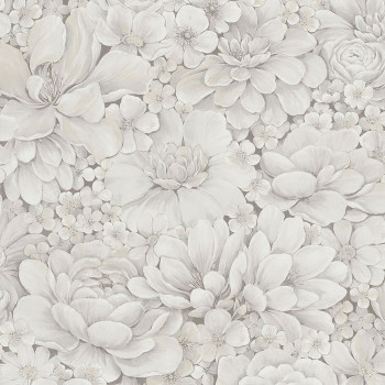 Grau-weiße Luxustapete mit Blumen 33952, Botanica, Marburg