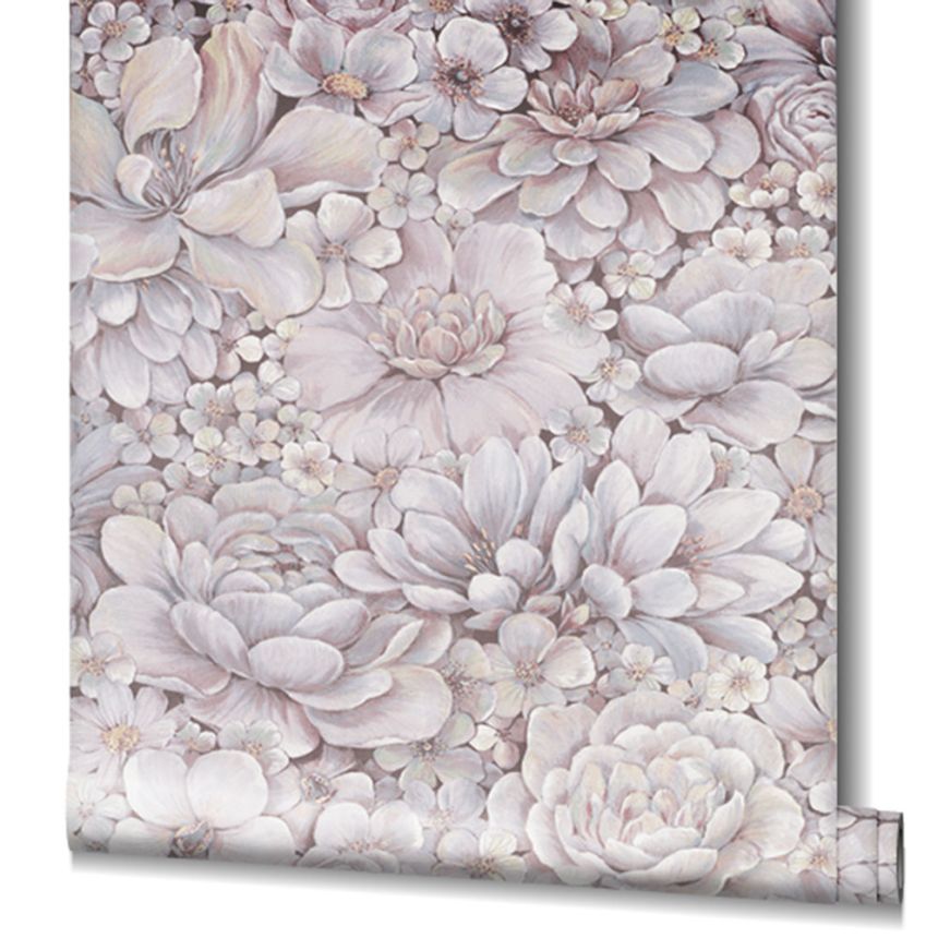 Grau-rosa Luxustapete mit Blumen 33954, Botanica, Marburg
