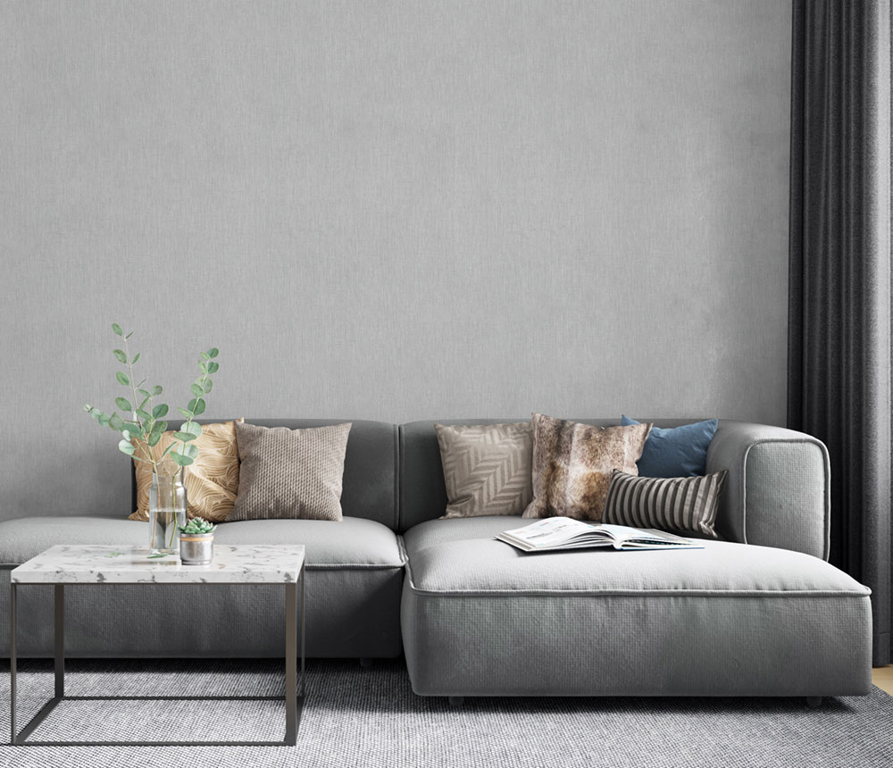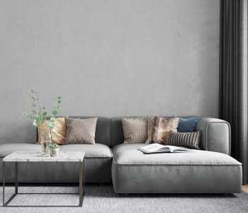 Luxuriöse, strukturierte, graue Vliestapete mit Vinyloberfläche - Stoffimitat.