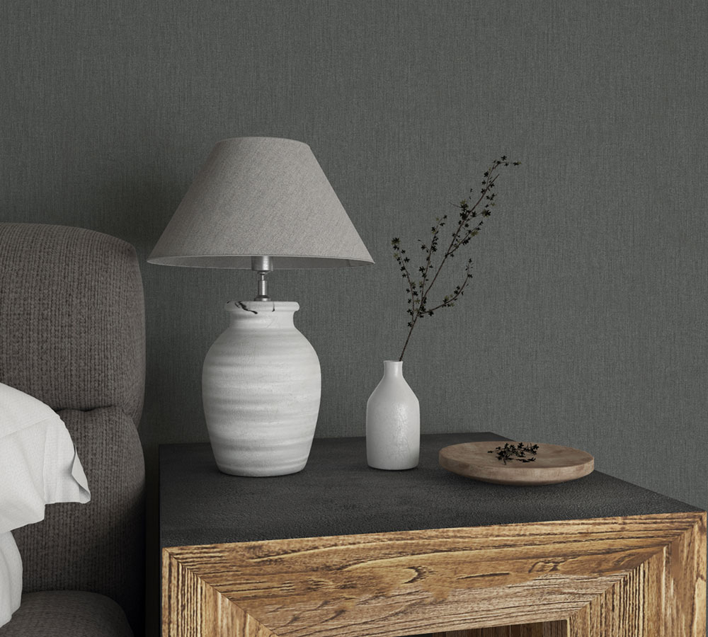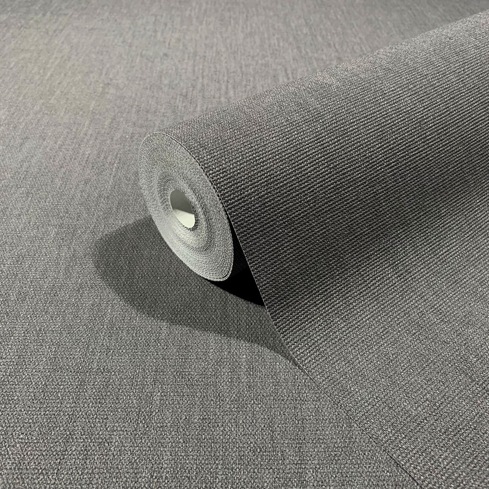 Schwarze einfarbige Luxustapete, Stoffimitation 33967, Botanica, Marburg