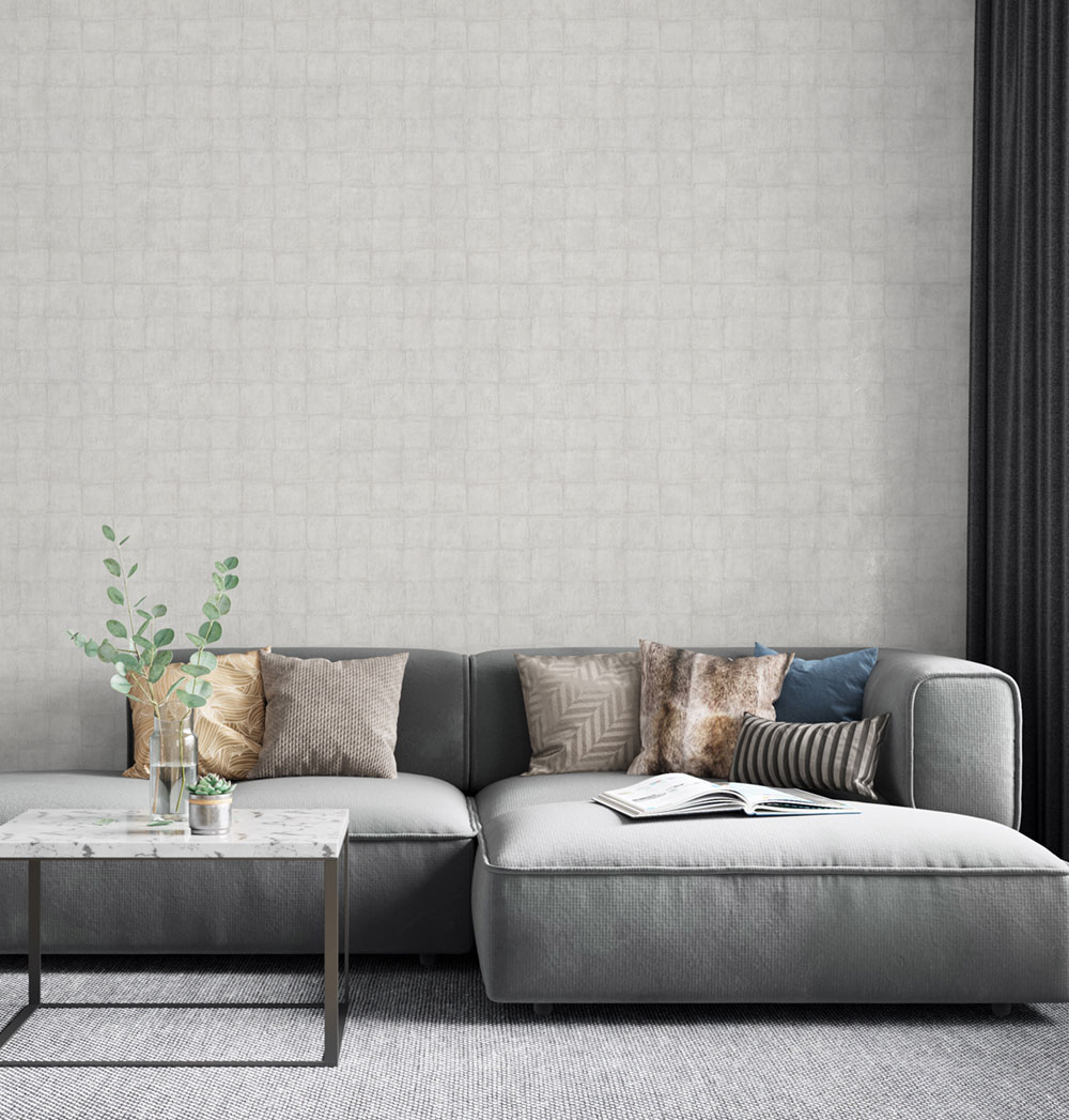 Graue Luxustapete, Würfelmuster 33968, Botanica, Marburg