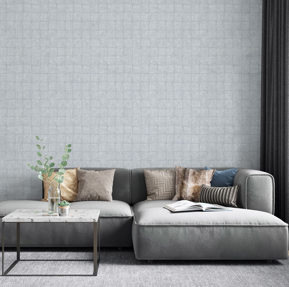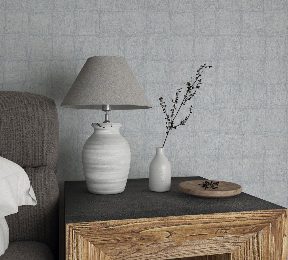 Graublaue Luxustapete, Würfelmuster 33969, Botanica, Marburg