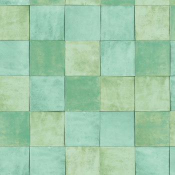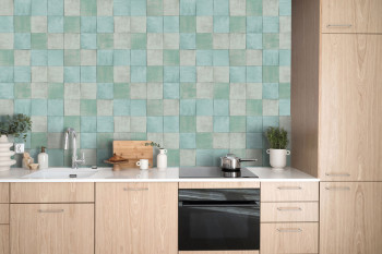 Luxuriöse, grobstrukturierte Vliestapete mit Vinyloberfläche mit hellgrünem Fliesendesign. Fliesengröße ca. 10,5x10,5cm.