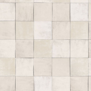 Luxuriöse, grobstrukturierte Vliestapete mit Vinyloberfläche mit grau-cremefarbenem Fliesendesign. Fliesengröße ca. 10,5x10,5cm.