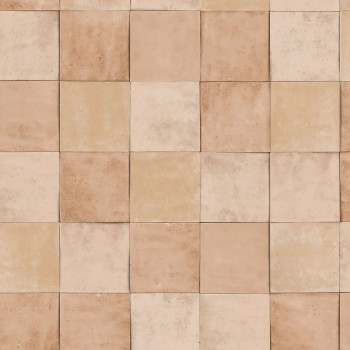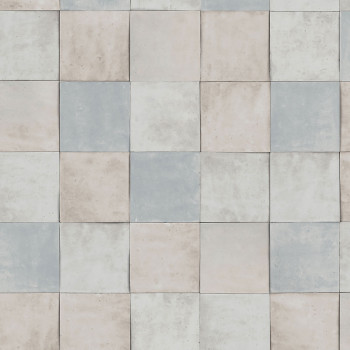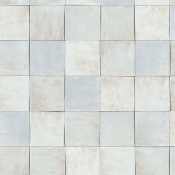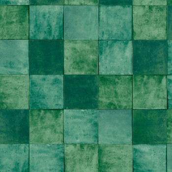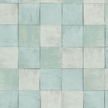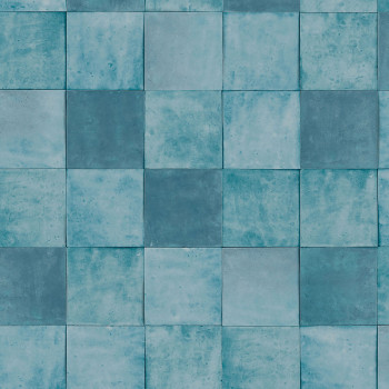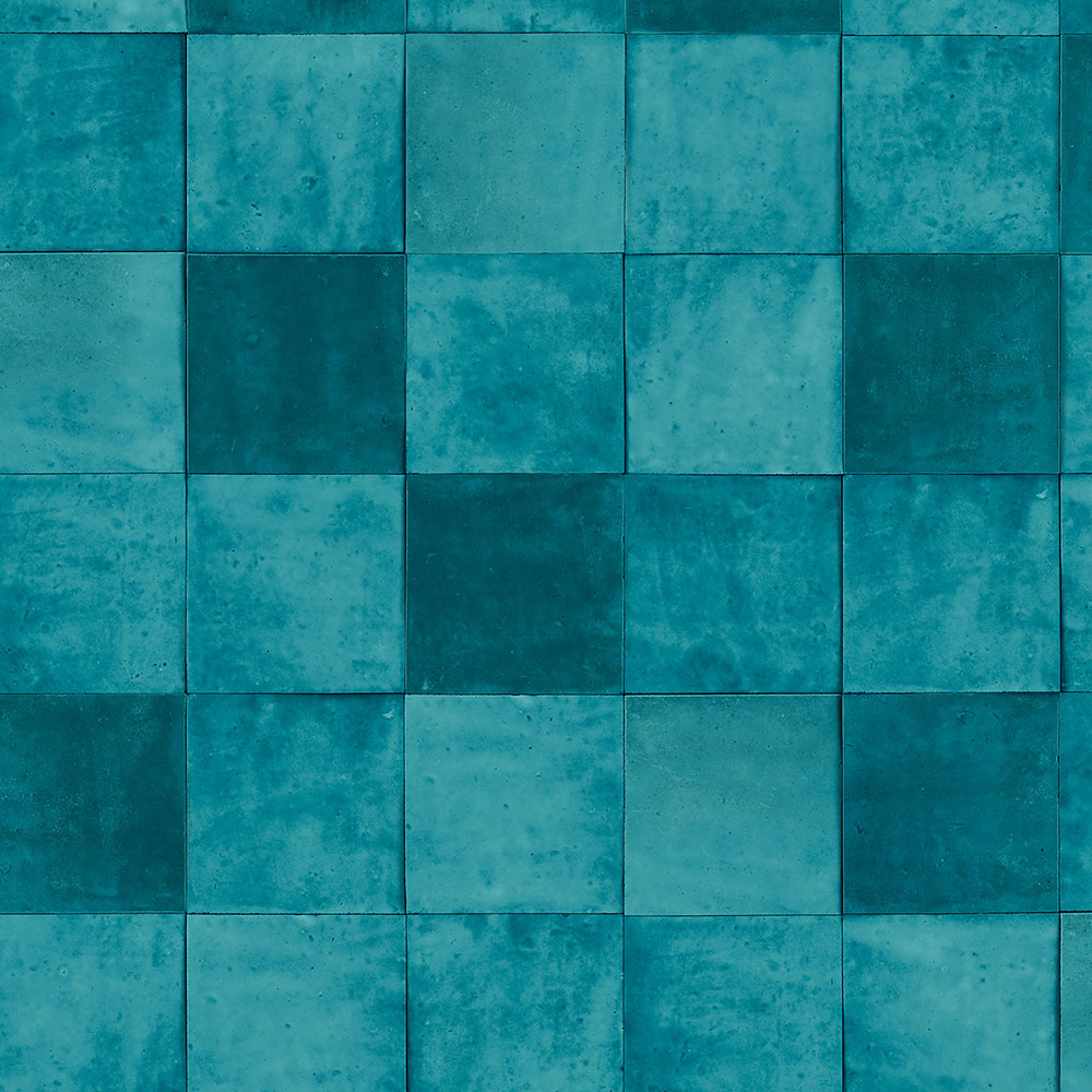 Luxuriöse, grobstrukturierte Vliestapete mit Vinyloberfläche mit türkisfarbenem Fliesendesign. Fliesengröße ca. 10,5x10,5cm.