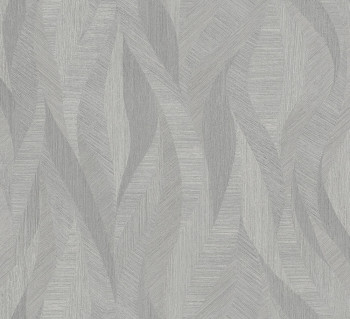 Schwarz-graue Vliestapete mit Vinyloberfläche und einem Wellenmuster, das an die vom Wind in den Wüstensand gezeichneten Linien oder die sanften Kämme der Dünen erinnert.