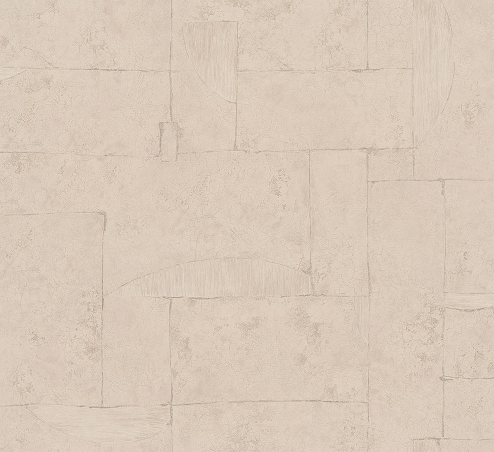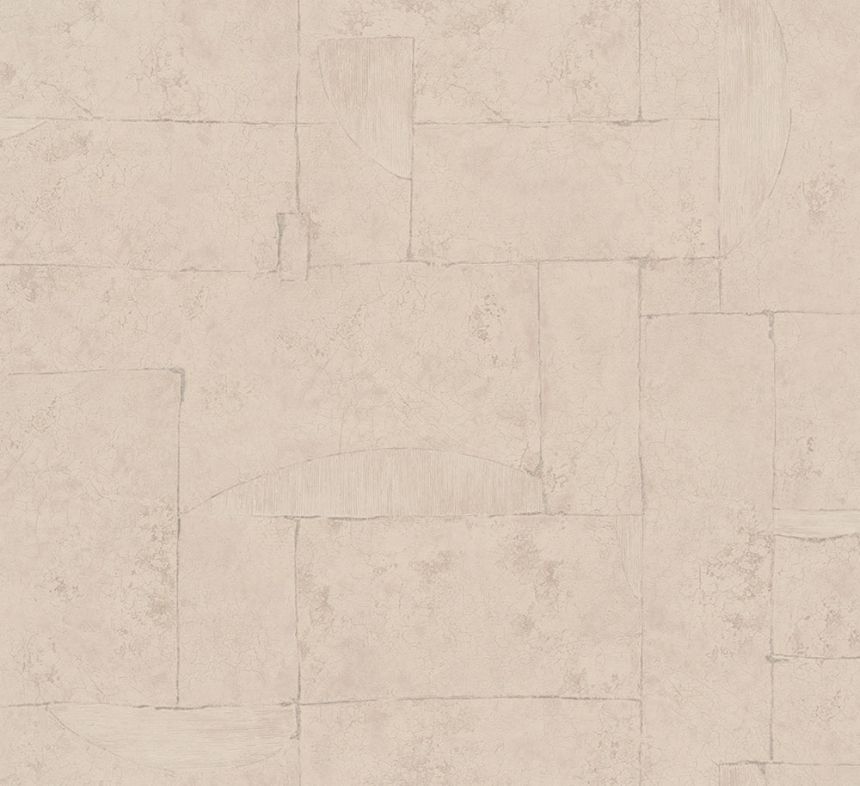 Rosafarbene Tapete mit geometrischem Muster und feinen silbernen Linien. Die Tapete ist Vlies mit einer Vinyloberfläche.
