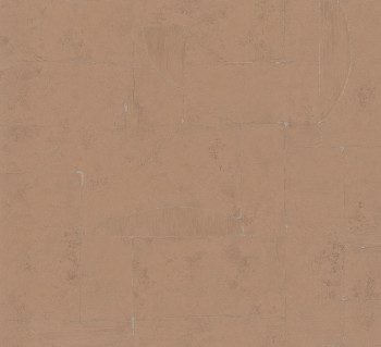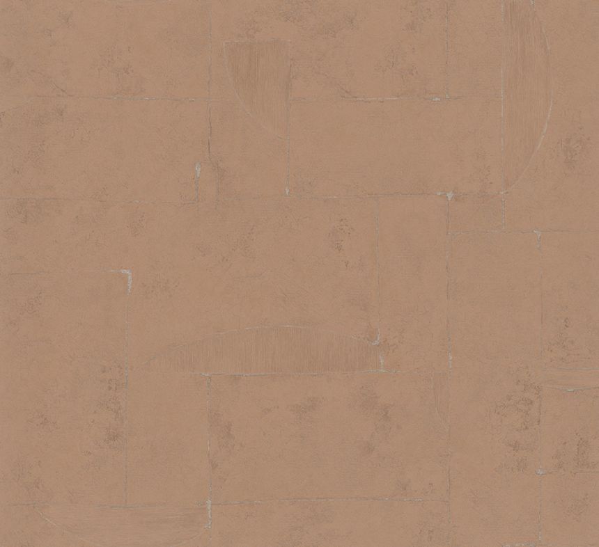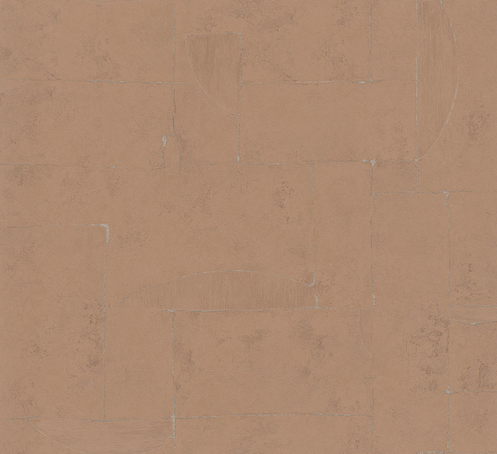 Orangefarbene Vliestapete mit geometrischem Muster und feinen silbernen Linien. Die Tapete ist Vlies mit einer Vinyloberfläche.
