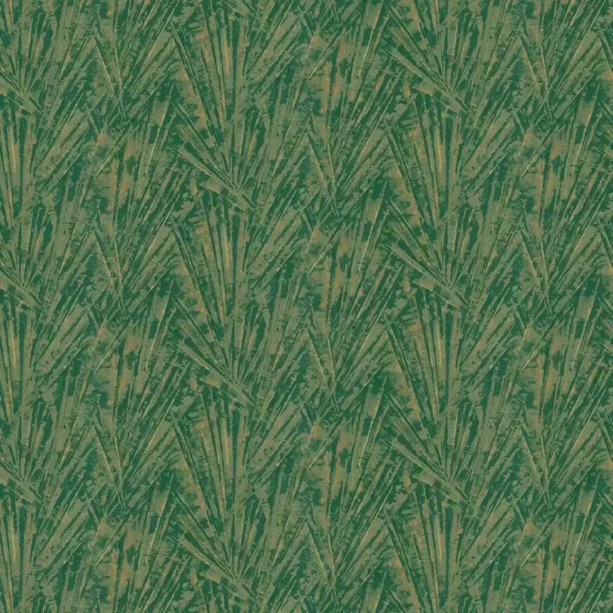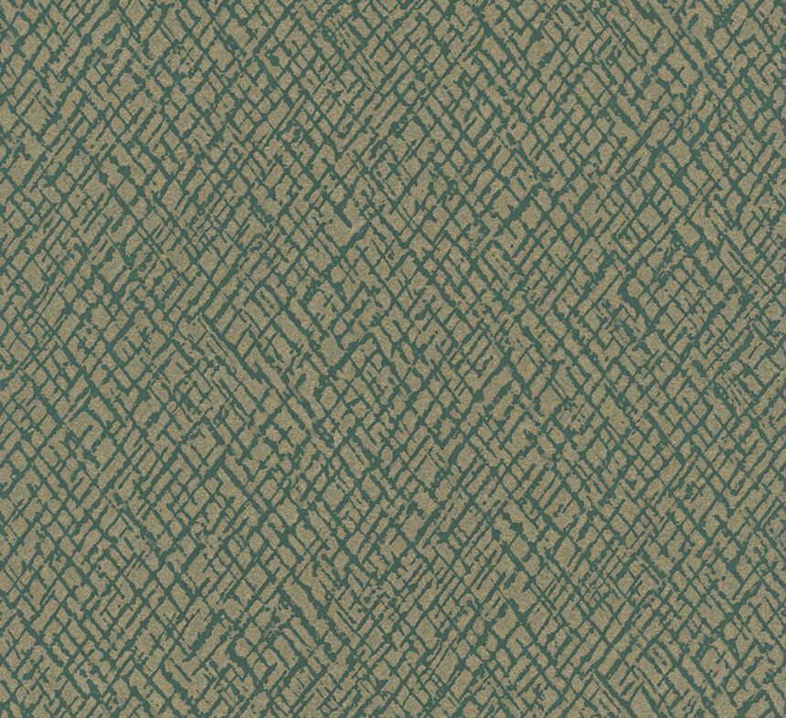 Grüne Vliestapete mit Vinyloberfläche mit Stuckimitation. Die Tapete ist matt.