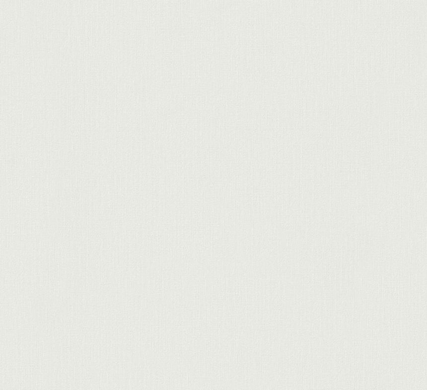 Weiße Vliestapete mit Vinyloberfläche mit dezentem unregelmäßigem Muster und silbernen Details.