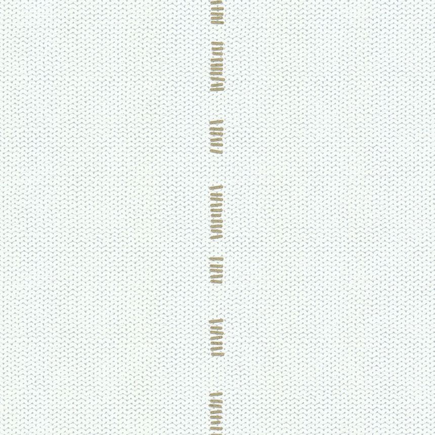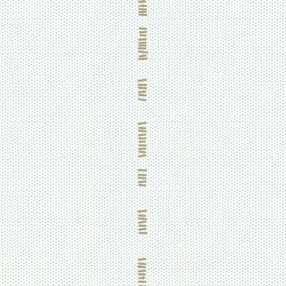Vliestapete mit Vinyloberfläche, weiß-graue Wellenstruktur, goldener gestrichelter Streifen.