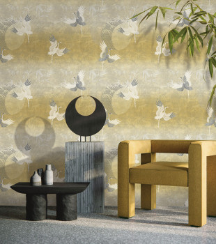 Graubeige Luxustapete, Vögel 72907, Zen, Emiliana Parati
