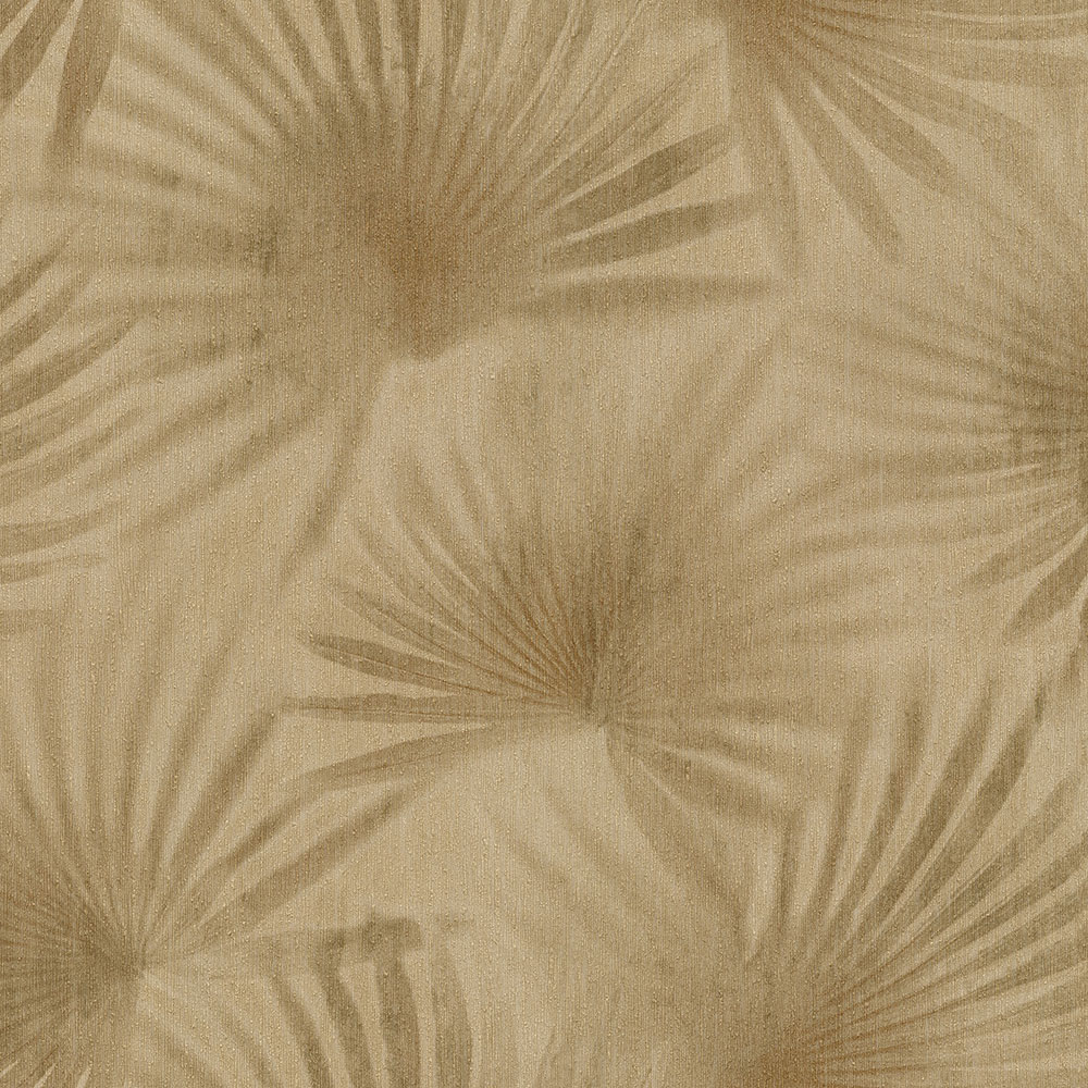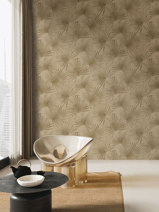 Luxuriöse braune Vliestapete mit Vinyloberfläche, Palmenblättermotiv, feiner Halbglanz.