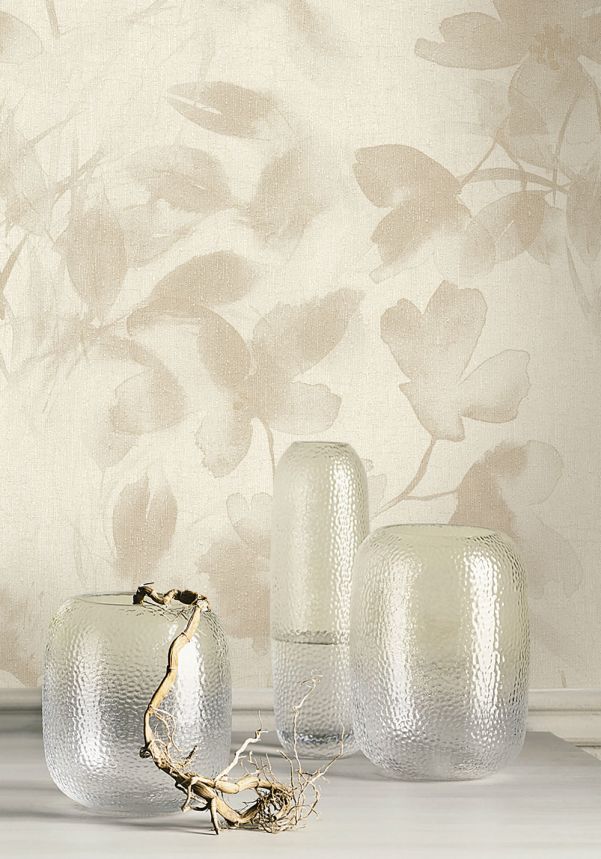 Luxuriöse creme- und beigefarbene Vliestapete mit Vinyloberfläche, halbglänzend.