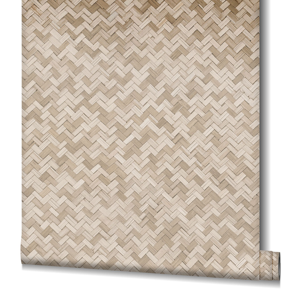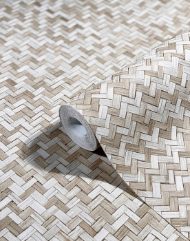 Beigefarbene Luxustapete, Rattan geflochten 33309, Botanica, Marburg