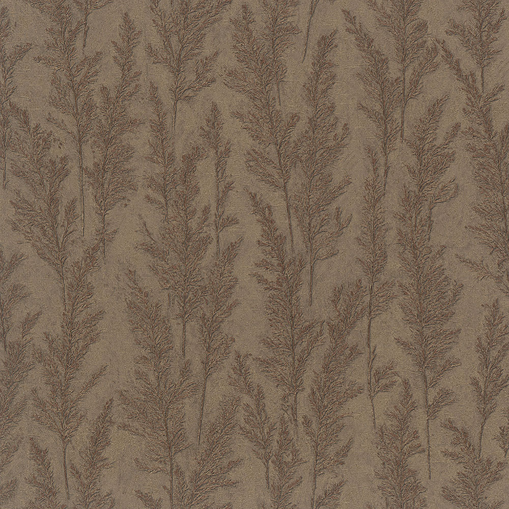 Bronzefarbene Vliestapete, Metallic-Effekte, Grashalme.