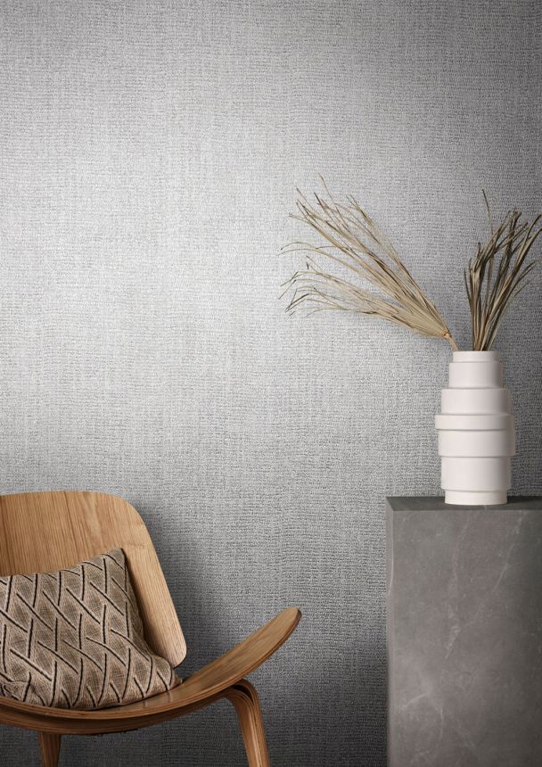 Luxuriöse metallische grau-silberne Wolltapete, Imitation von grobem Stoff.