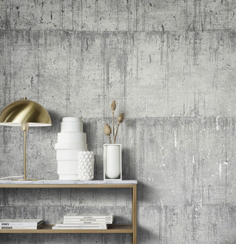 Grau-silberne Tapete, Betonsteinimitation 33240, Natural Opulence, Marburg