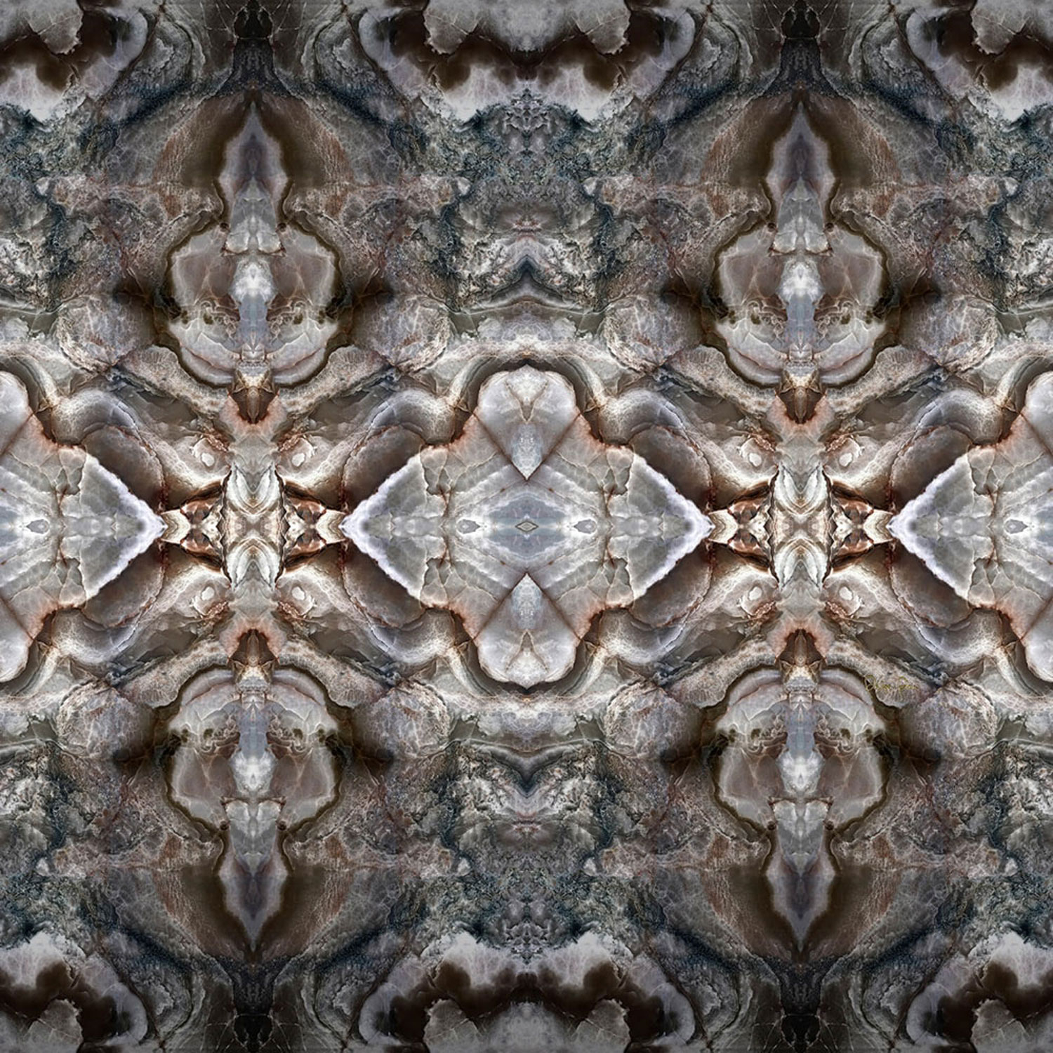 Luxuriöse Fototapete mit einem abstrakten grau-braunen Motiv auf strukturiertem Hintergrund.