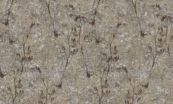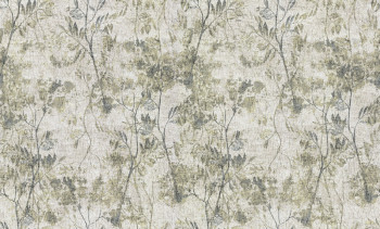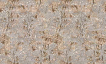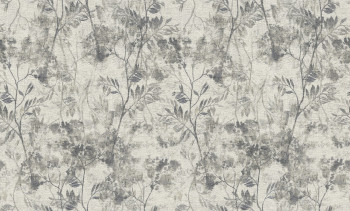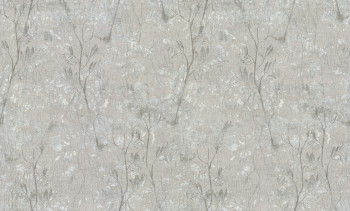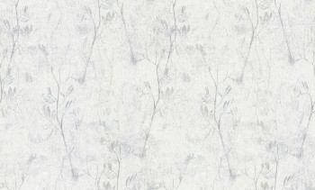 Metallische weiß-silberne Luxustapete mit einem Muster aus Zweigen und Blättern.
