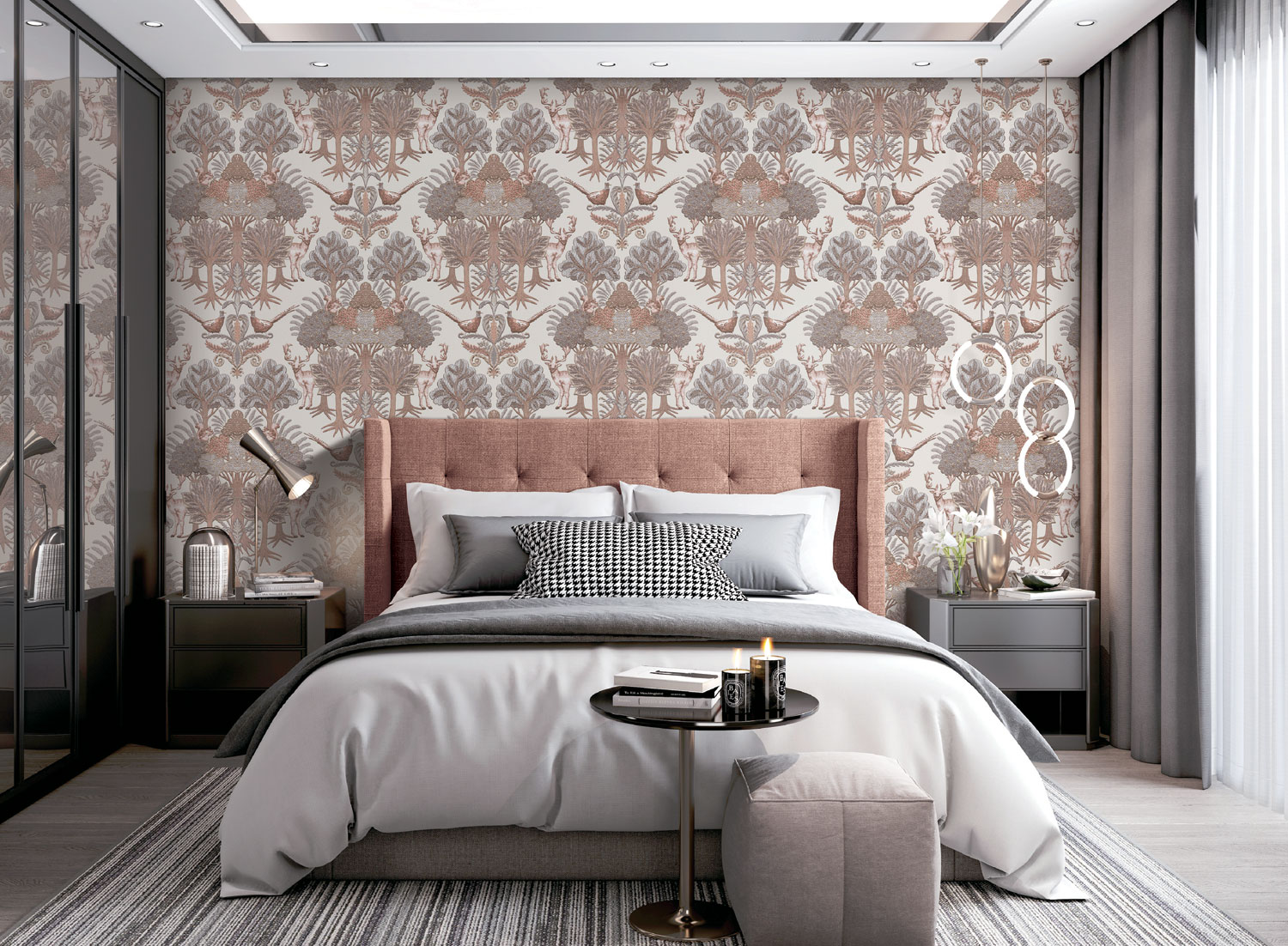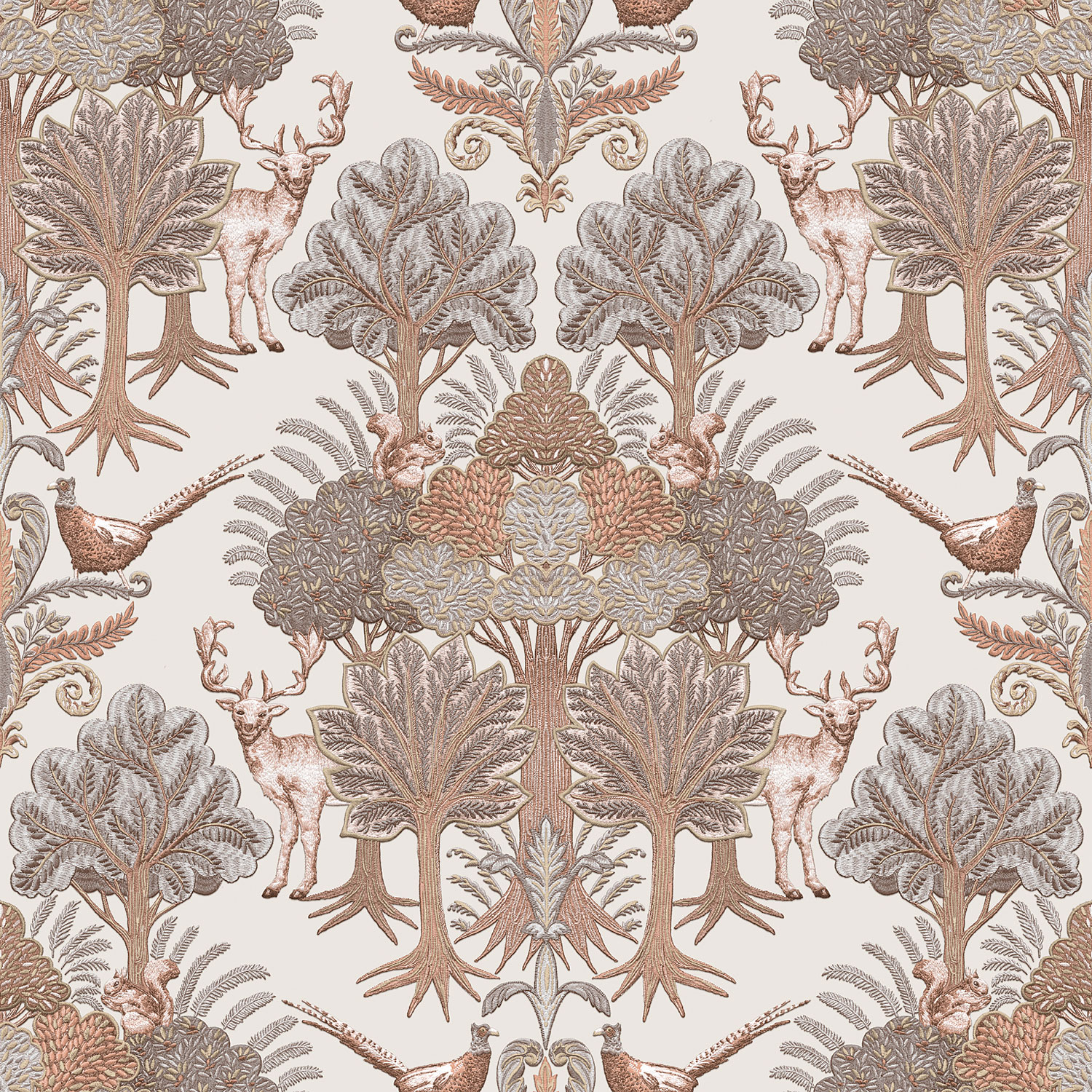Lassen Sie sich von den wehenden Weidenzweigen oder Tapeten mit natürlichen Mustern aus Bäumen und Vögeln mitreißen, die auf unkonventionelle Weise zu Ornamenten arrangiert sind und zudem den Eindruck erwecken, als wären sie auf die Tapete gestickt.