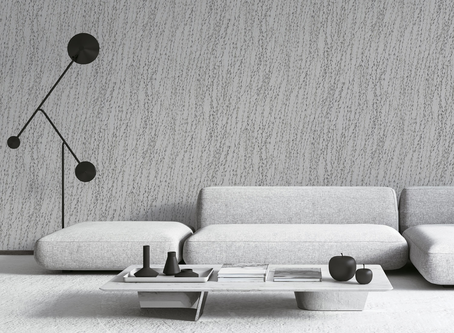 Lassen Sie sich von den wehenden Weidenzweigen oder Tapeten mit natürlichen Mustern aus Bäumen und Vögeln mitreißen, die auf unkonventionelle Weise zu Ornamenten arrangiert sind und zudem den Eindruck erwecken, als wären sie auf die Tapete gestickt.