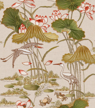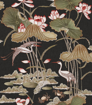 Luxuriöse braune Tapete, Seerosen, Vögel, TP422706, Tapestry, Design ID