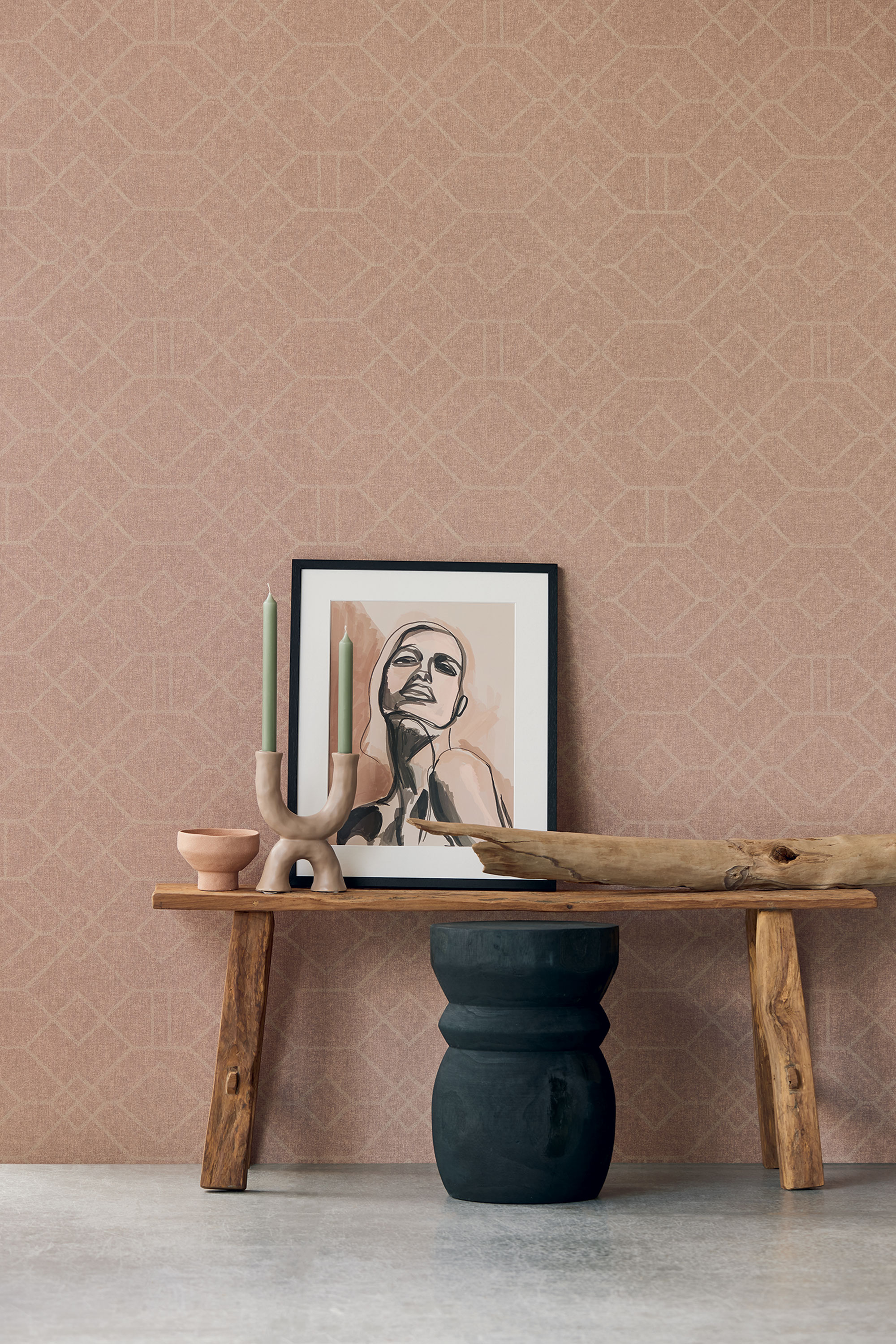 Altrosa Vliestapete, geometrisches Muster, dezent geprägte Textur.