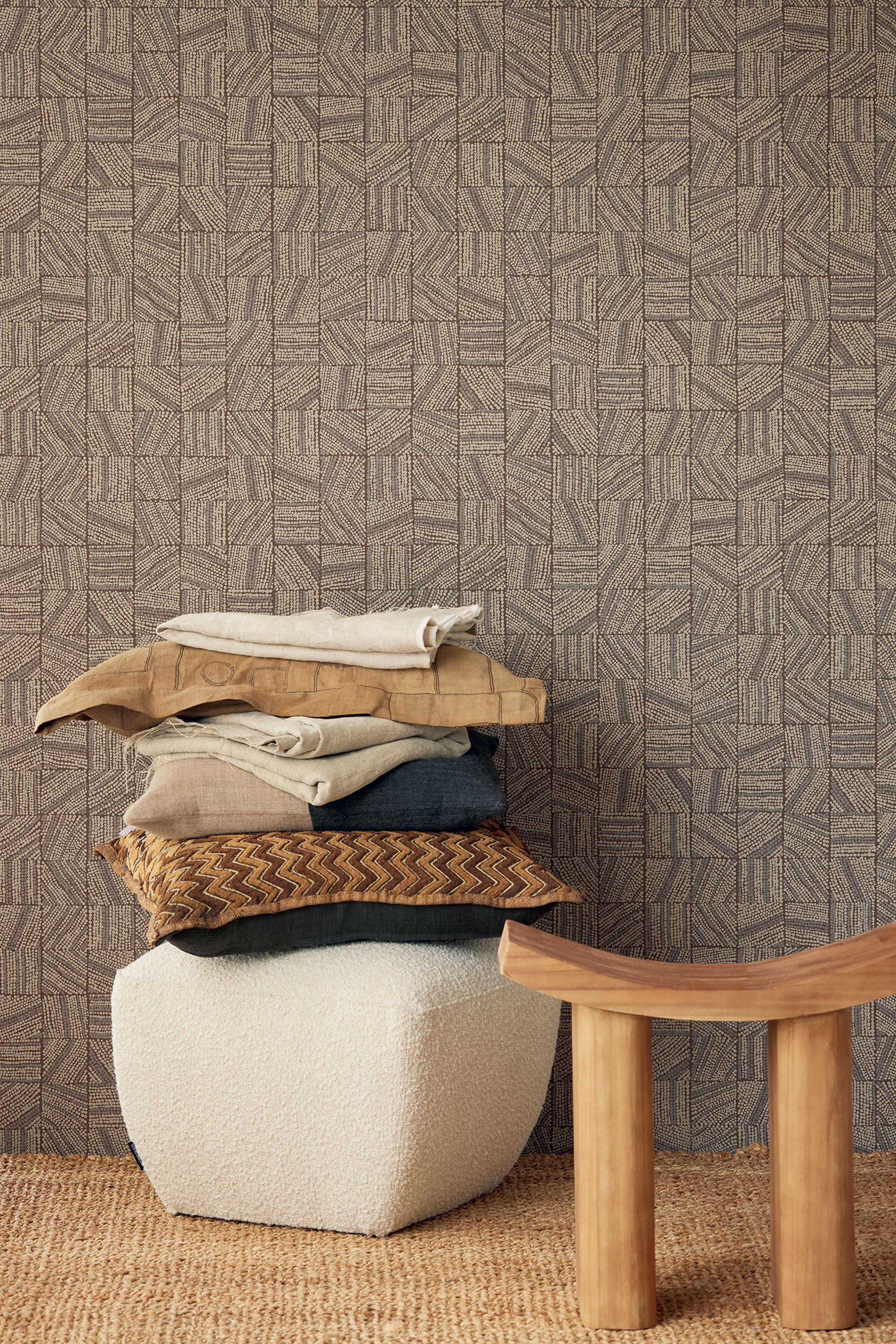 Lassen Sie Ihre Finger den Fäden folgen, die rhythmisch zu einem organischen Motiv verwoben sind. Träume von Sandwellen, die von Meereswellen geformt werden. Lassen Sie sich von farbigen Punkten in fantasievollen Mosaiken oder subtilen Farbschichten mit der Überschwänglichkeit keramischer Glasuren inspirieren. Sie können sich auch für ein dezentes Blattmuster auf der Tapete entscheiden, das sanft auf einem matten Hintergrund schimmert. Oder ein feiner grafischer Einband, der an einen Wandteppich erinnert. Warme Neutraltöne, errötende Erdtöne, nebliges Graugrün und intimes Ocker bereichern Ihr Interieur.