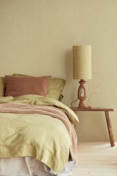 Lassen Sie Ihre Finger den Fäden folgen, die rhythmisch zu einem organischen Motiv verwoben sind. Träume von Sandwellen, die von Meereswellen geformt werden. Lassen Sie sich von farbigen Punkten in fantasievollen Mosaiken oder subtilen Farbschichten mit der Überschwänglichkeit keramischer Glasuren inspirieren. Sie können sich auch für ein dezentes Blattmuster auf der Tapete entscheiden, das sanft auf einem matten Hintergrund schimmert. Oder ein feiner grafischer Einband, der an einen Wandteppich erinnert. Warme Neutraltöne, errötende Erdtöne, nebliges Graugrün und intimes Ocker bereichern Ihr Interieur.