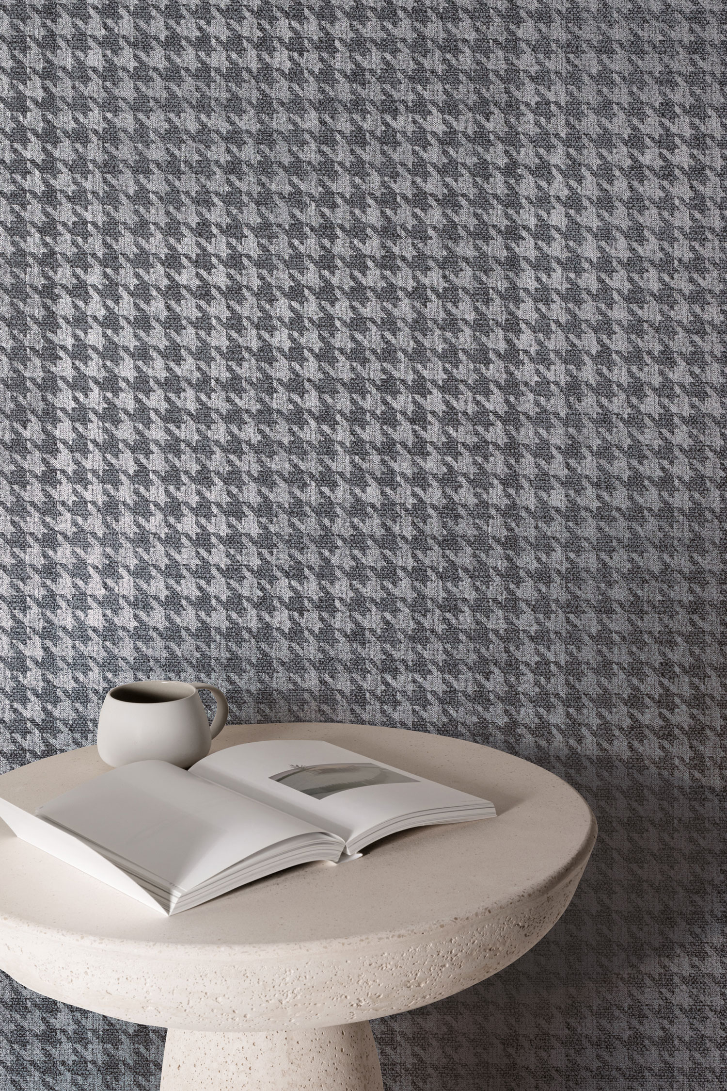 Schwarz-silberne Tapete, Stoffimitat, Hahnspurenmuster, ILA503, Aquila, Khroma by Masureel