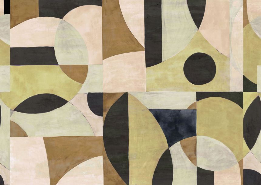 Vlies-Fototapete, geometrisches Muster, Schattierungen von Braun, Grau-Beige, Rosa, Grün und Schwarz. Für größere Breite kombinierbar mit der Fototapete DGILA1031, DGILA1032 und DGILA1034 – siehe Foto