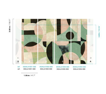 Vlies-Fototapete, geometrisches Muster, Schattierungen von Grün, Rosa, Beige und Schwarz. Für größere Breite kombinierbar mit der Fototapete DGILA1051, DGILA1052 und DGILA1053 – siehe Foto