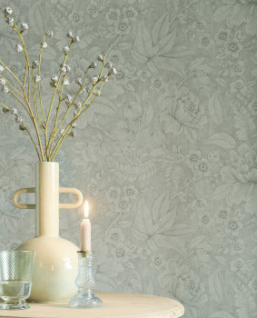 Glatte grüne Vliestapete, gezeichnetes Blumenmuster.